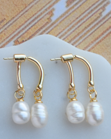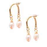 Upgrade your accessory game with these exquisite Four Pearl Earrings. Crafted with gold-dipped brass and natural pearls, this unique style is sure to elevate any outfit. These earrings feature pearls in both the front and back, making them a fun yet sophisticated choice. 1.3"
