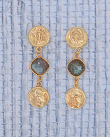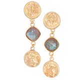 With their 14K Gold-plated Roman Goddess coin earring base and Mediterranean-blue flash Labradorite, everything about this pair of Italian beach-inspired earrings scream "la vita bella!" (life is beautiful!)