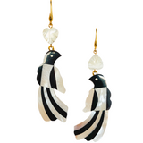 We paired these unbelievably chic vintage Mother of Pearl mosaic Toucans with carved mini white Mother of Pearl shell Monstera leaves. You'll be the life of the party with these on (as if you weren't already!)