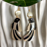 Toucan Statement Earrings in Black and Ivory Mother of Pearl Shell Mosaic