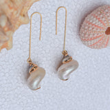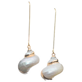 Make a dramatic entrance with our stunning Gold Turbo Shell Long Line Earrings. This design features natural gold-plated turbo shells, measuring an impressive 2.75 inches in length. The intricate details of the shell are beautifully highlighted against the lustrous gold finish, creating a truly captivating accessory.