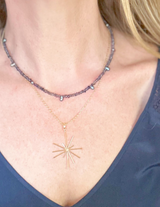 Midnight Bloom Necklace With Iolite and Peacock Pearls